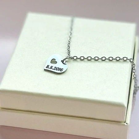 Náhrdelník srdíčko text na přání - datum