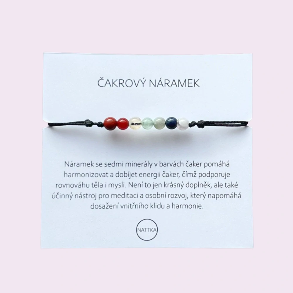 Náramek se sedmi minerály v barvách čaker. Pomáhá harmonizovat a dobíjet energii čaker, čímž podporuje rovnováhu těla a mysli. Není to jen krásný doplněk, ale i účinný nástroj pro meditaci a osobní rozvoj, který napomáhá k dosažení vnitřního klidu a harmonie.